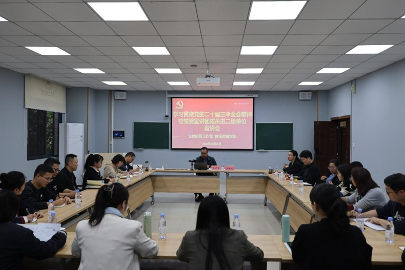10月11日下午,党委教师工作部、教师教育学院在集贤楼204多功能室联合举行学习贯彻党的二十届三中全会精神专题宣讲会,校党委委员、党委教师工作部部长陈进东作宣讲报告。党委教师工作部、教师教育学院全体教职工参会,宣讲会由教师教育学院党委书记张红主持。