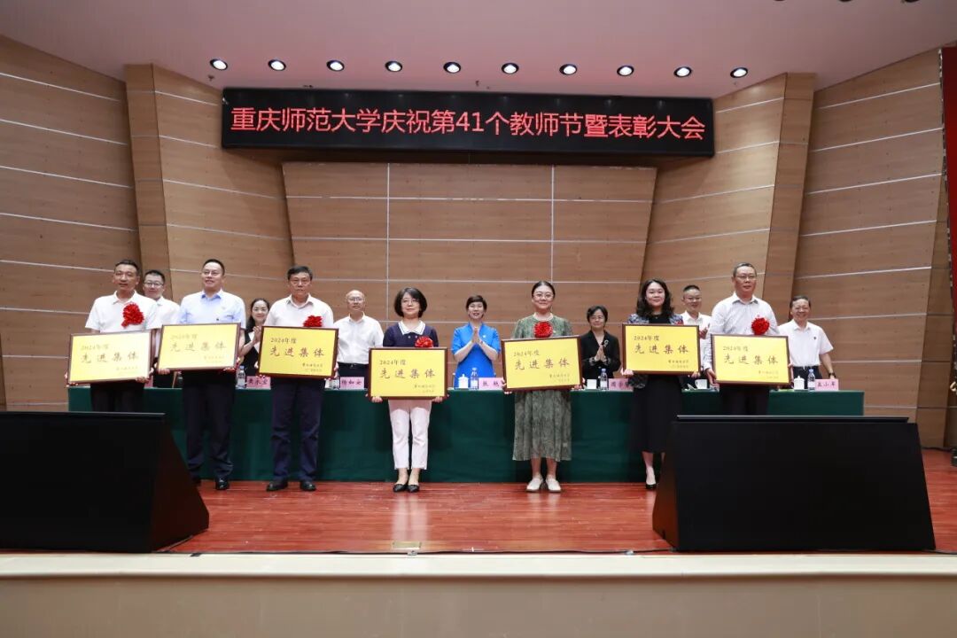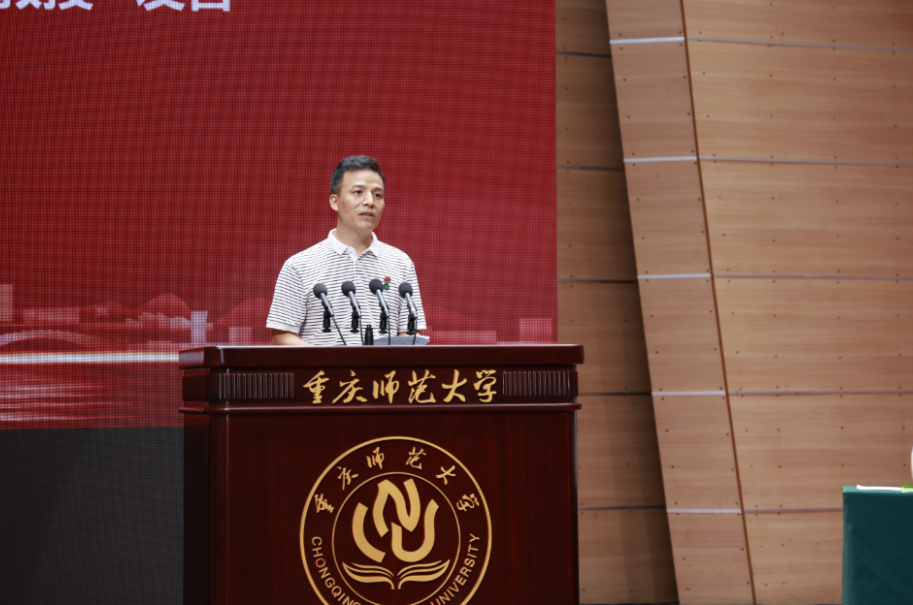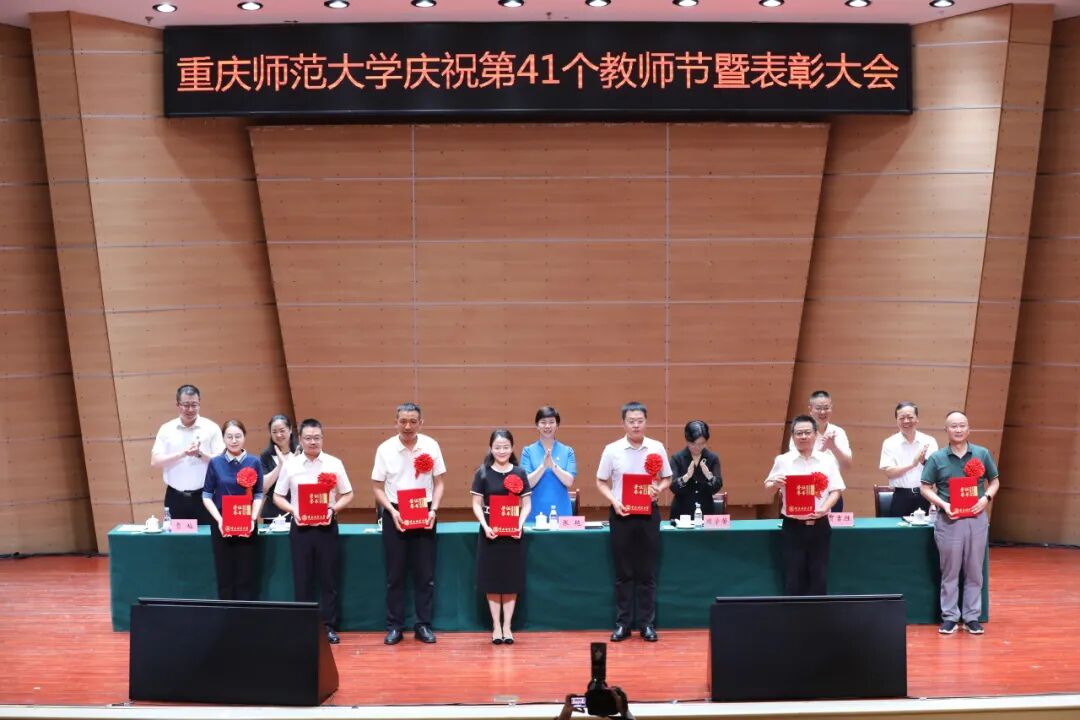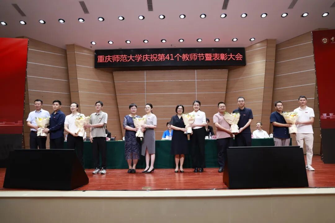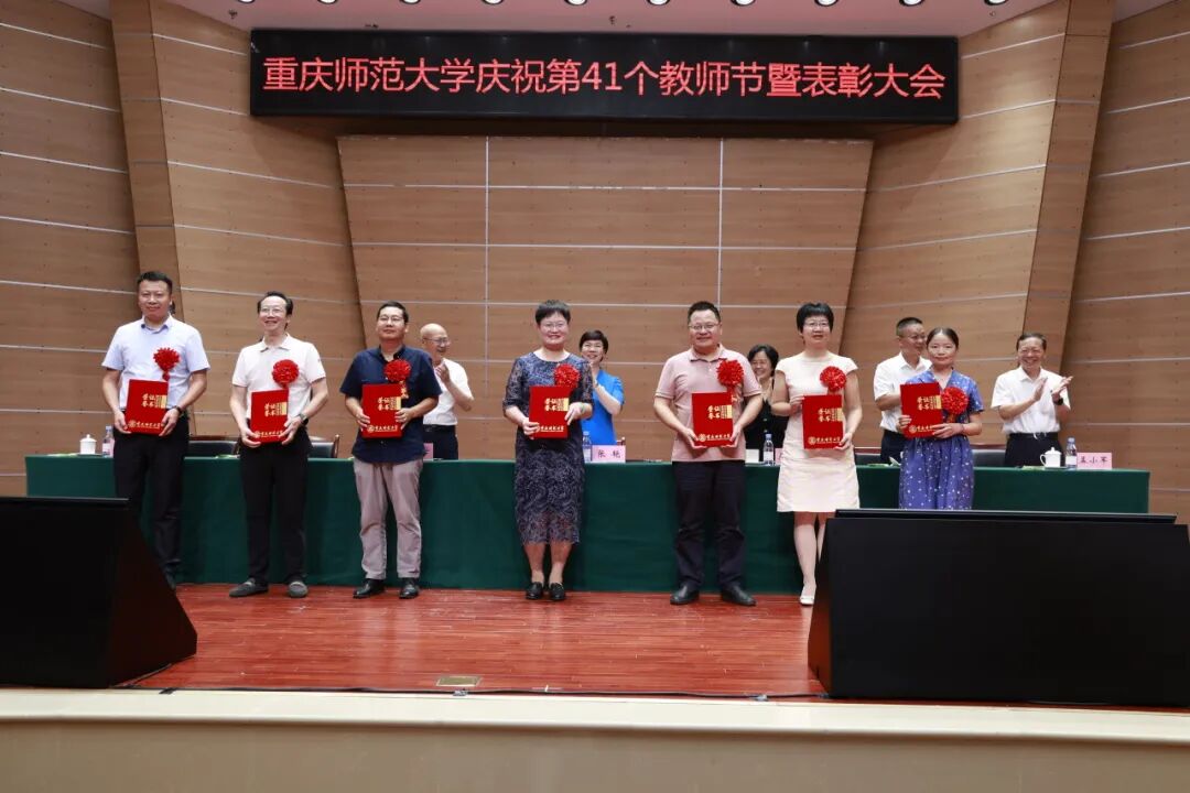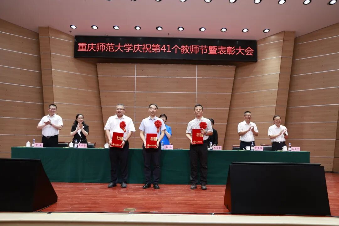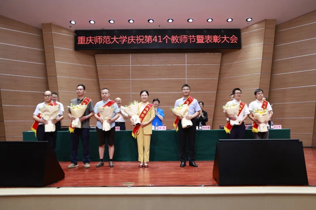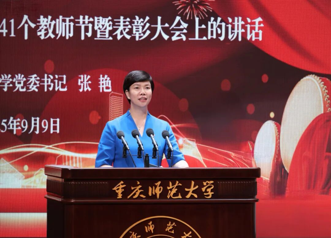 学校党委书记张艳代表学校党委和行政祝福全校教职员工节日快乐,向受到表彰的先进集体和个人表示祝贺,向从事教学工作和学校工作满三十年的老师表示崇高敬意,向新加入重师大家庭的青年教师表示热烈欢迎!